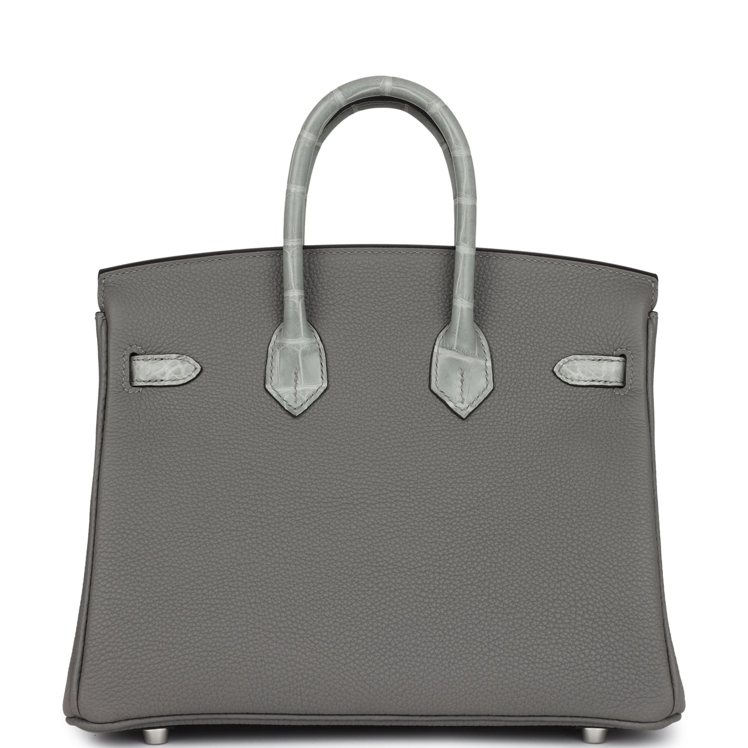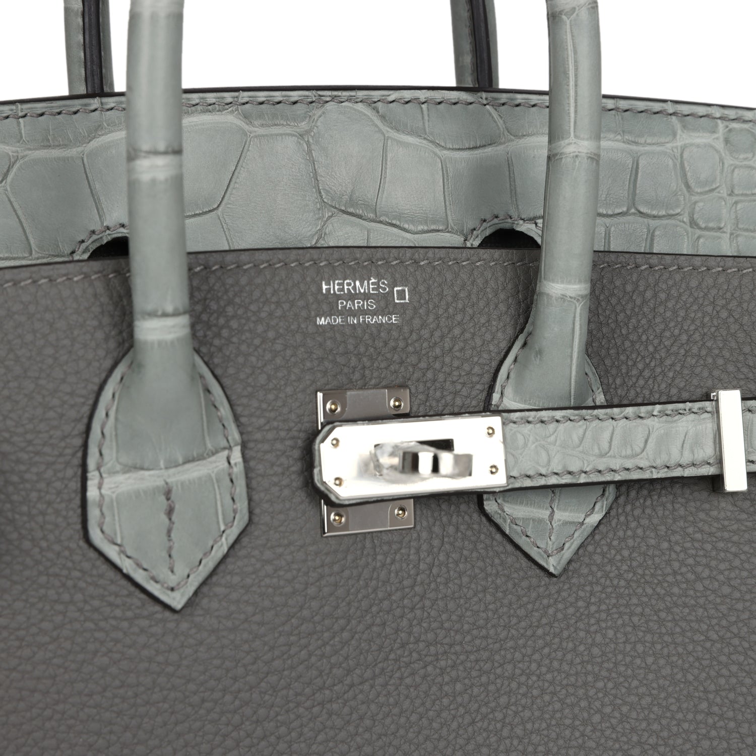 Hermes Birkin 25 Gris Meyer Togo and Gris Ciment Matte Alligator Touch Palladium Hardware