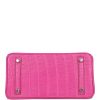 This Birkin is in Rose Sheherazade shinyPorosuscrocodile leather withpalladium hardware and has tonal stitching, front strap, two straps with center toggle closure, clochette with lock and two keys and double rolled handles.