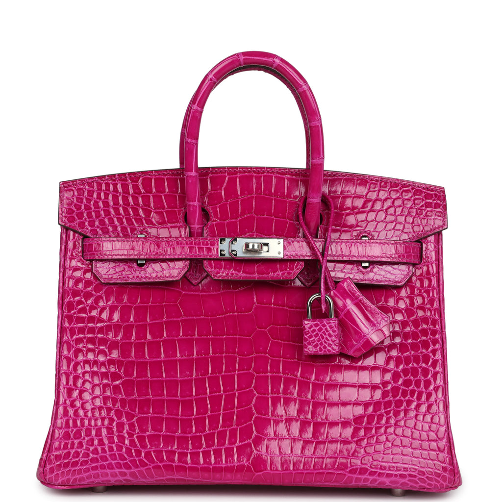 Hermes Birkin 25 Rose Sheherazade Shiny Porosus Crocodile Palladium HardwareHermes Birkin 25 Rose Sheherazade Shiny Porosus Crocodile Palladium Hardware