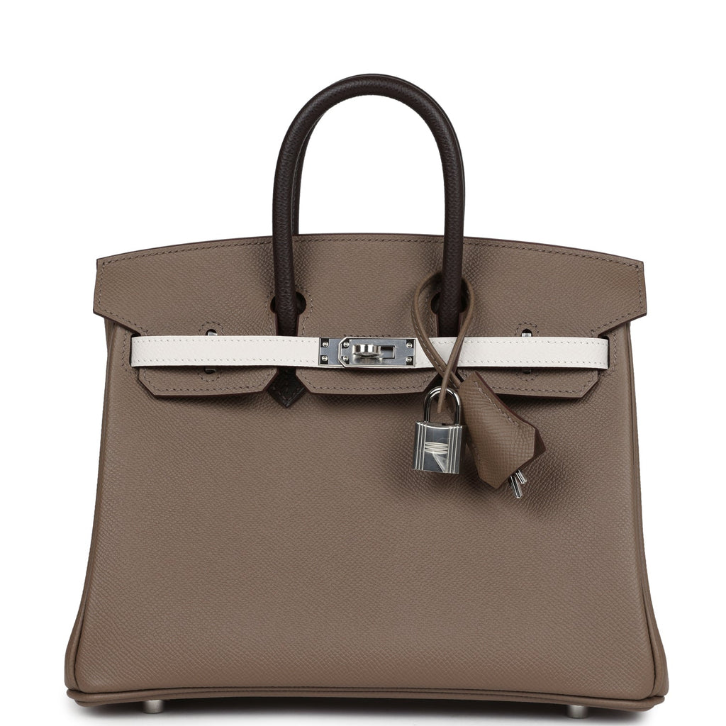 Hermes Birkin 25 Tri-color Etoupe, Ebene and Gris Pale Epsom Palladium Hardware