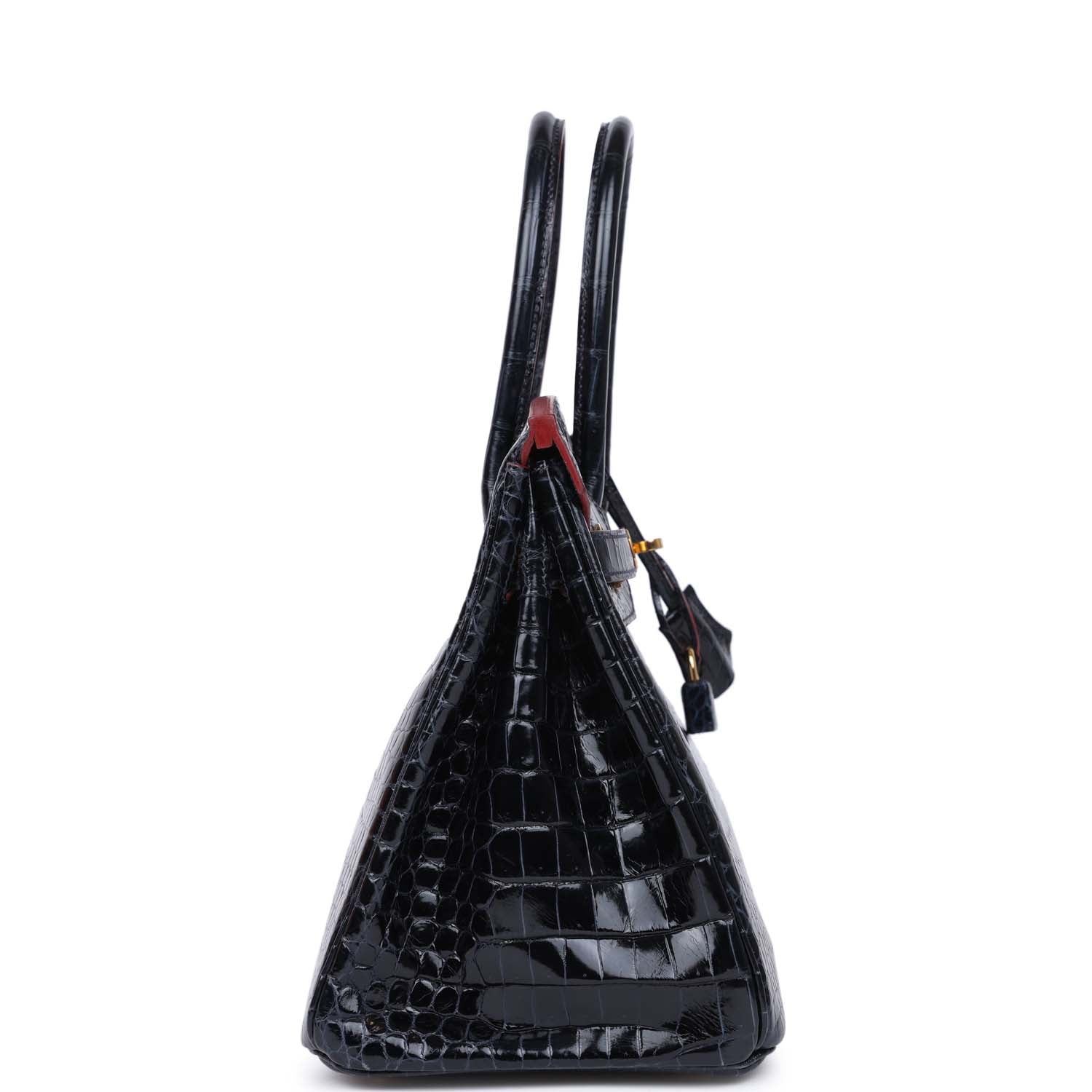 Hermes Birkin 30 Bleu Marine and Rouge H Contour Shiny Porosus Crocodile Gold Hardware