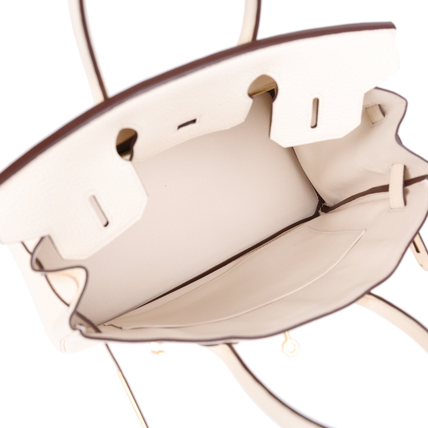 The interior is lined withNata chevre and has one zip pocket with an Hermès engraved zipper pull and an open pocket on the opposite side.