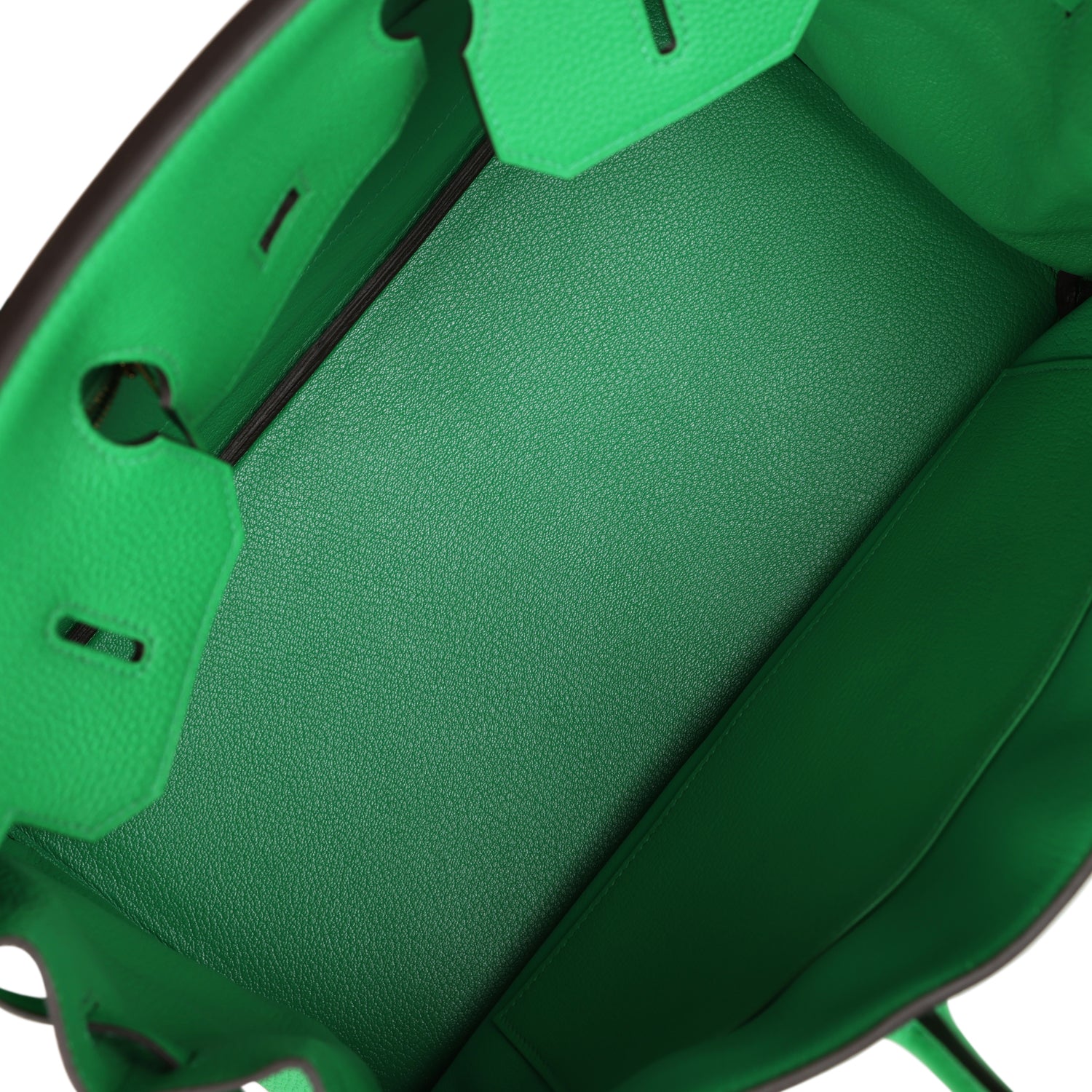 The interior is lined withBambou chevre and has one zip pocket with an Hermès engraved zipper pull and an open pocket on the opposite side.