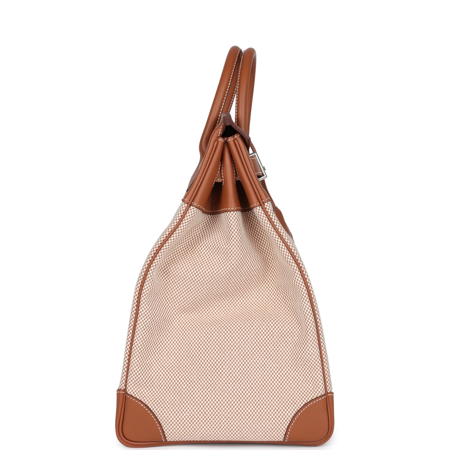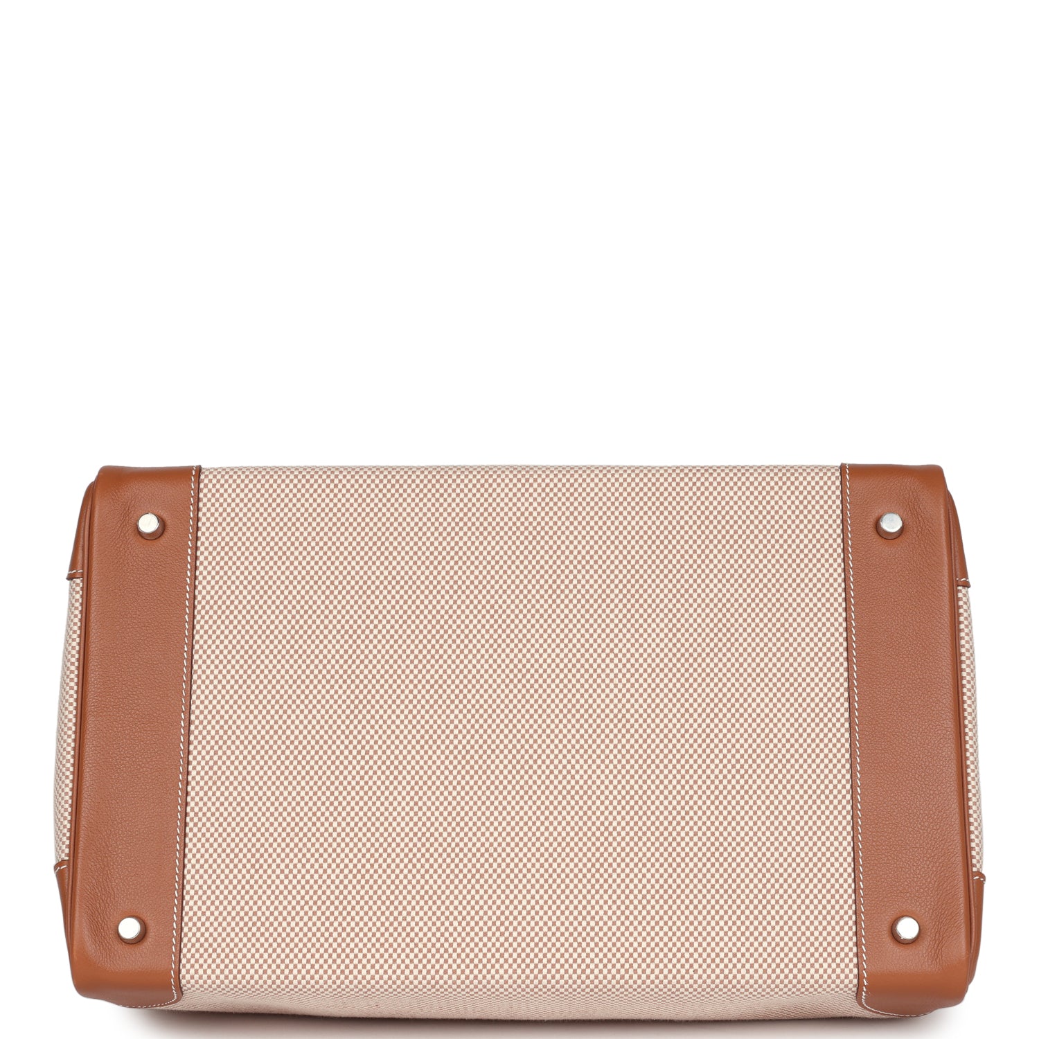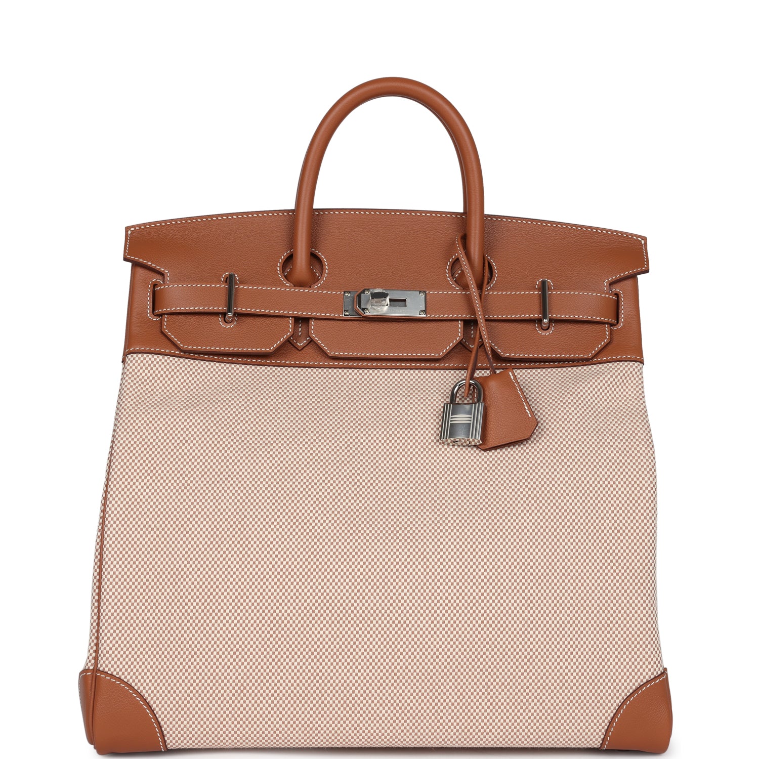 Hermes Birkin HAC 40 Gold Evercolor and Ecru Toile Palladium Hardware