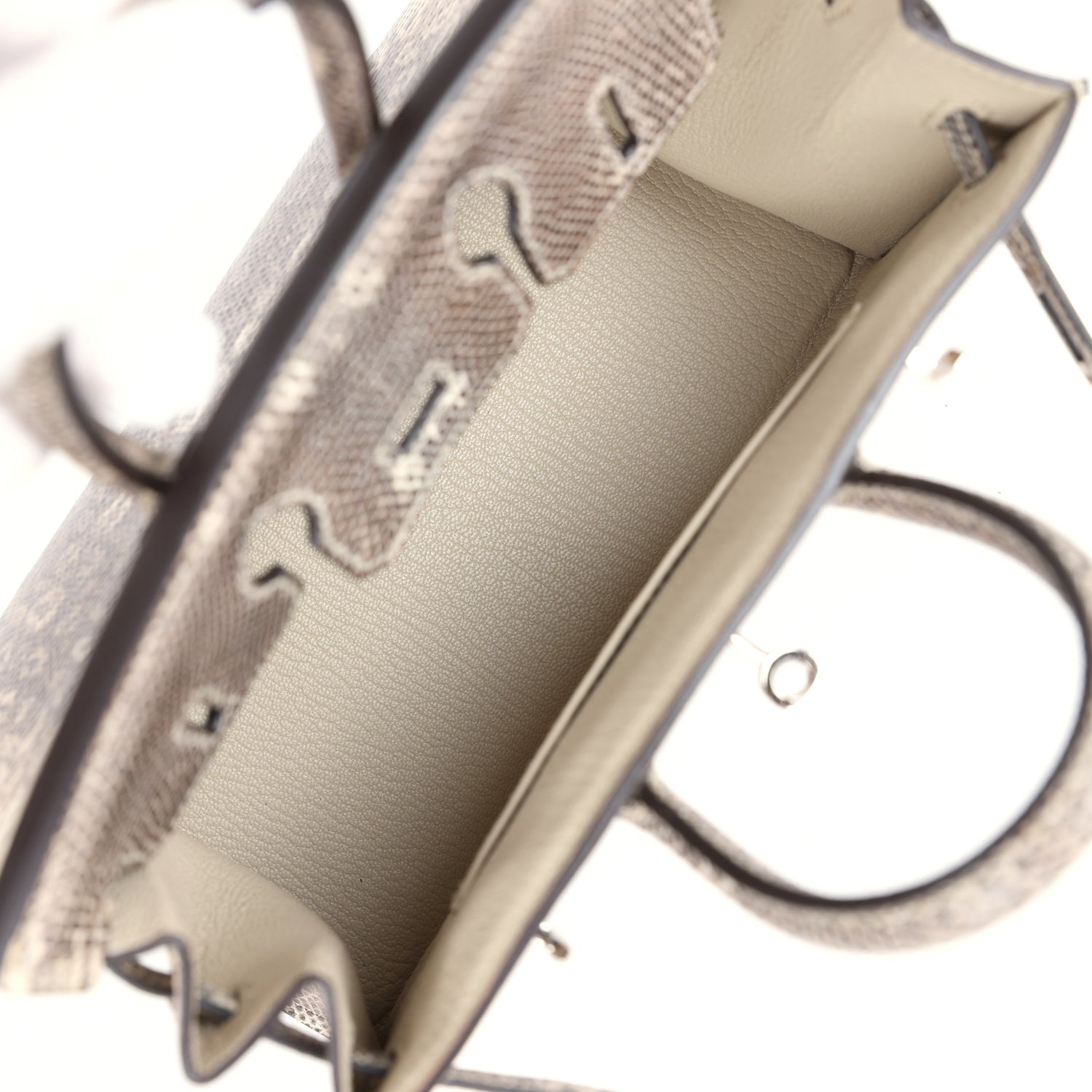 This Birkin is in Ombre Varanus Salvator Lizard leather with palladium hardware and has tonal stitching, front flap with two straps, front toggle closure, clochette with lock and two keys, and two rolled handles.
