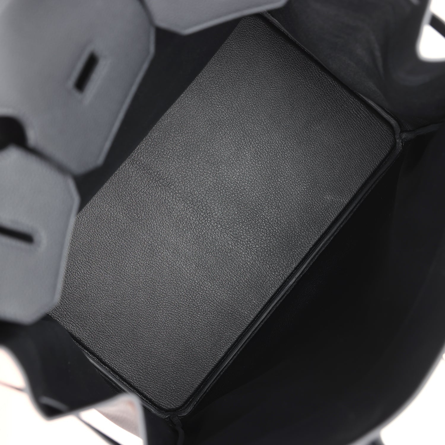 The interior is lined in Black chevre and no interior pockets.