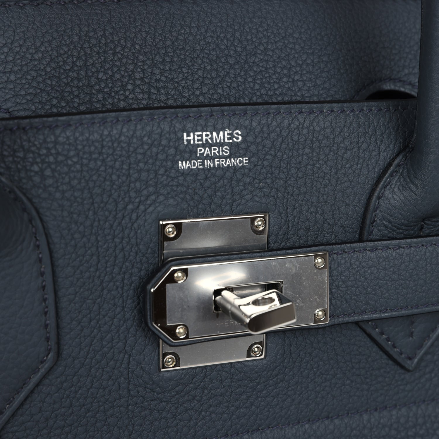 The interior is lined in Gris Misty chevre.