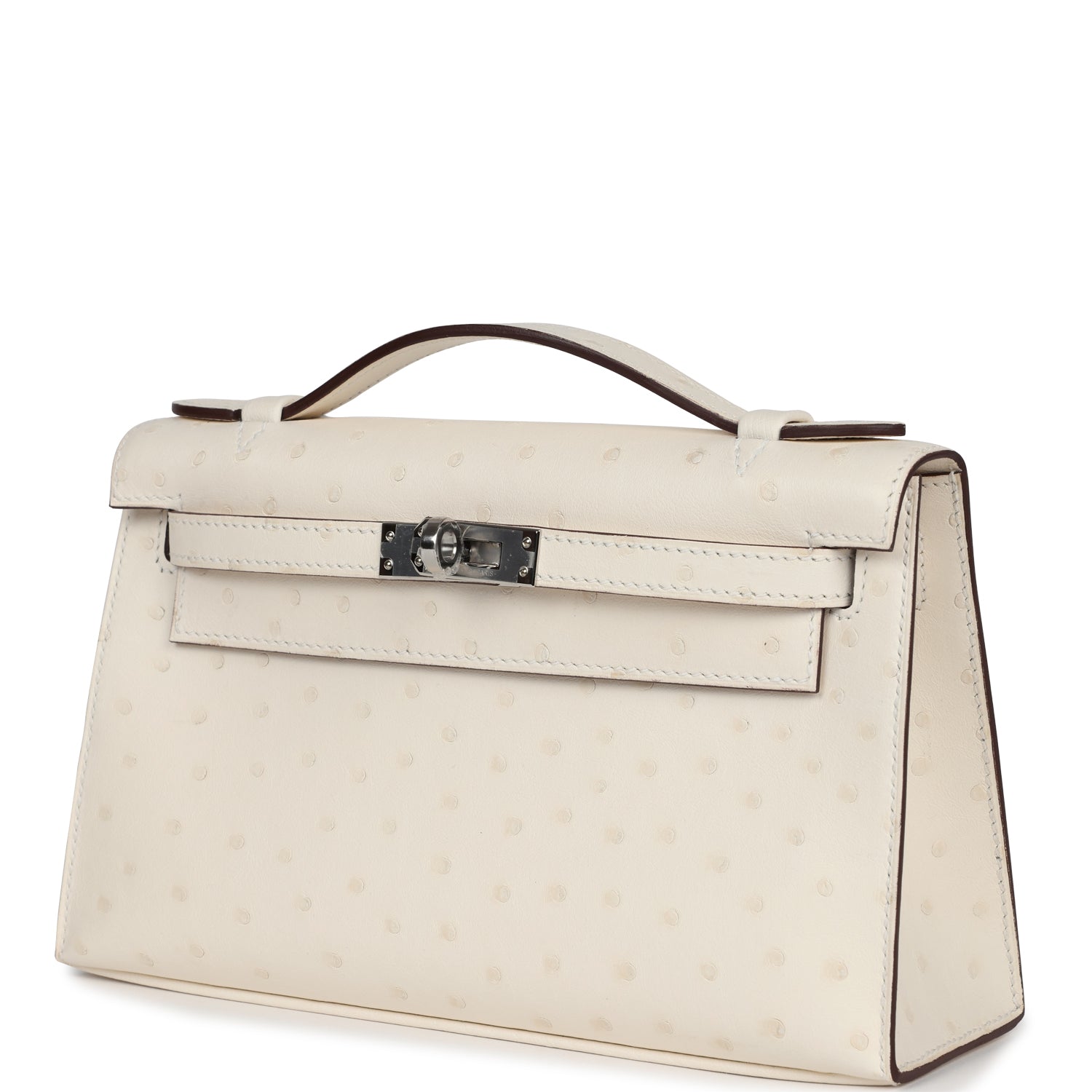 Hermes Kelly Pochette Nata Ostrich Palladium Hardware