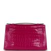 This Kelly Pochetteis inVert Bosphore Shiny Alligator leather with gold hardware, tonal stitching, front flap with two straps, toggle closure and single flat handle.
