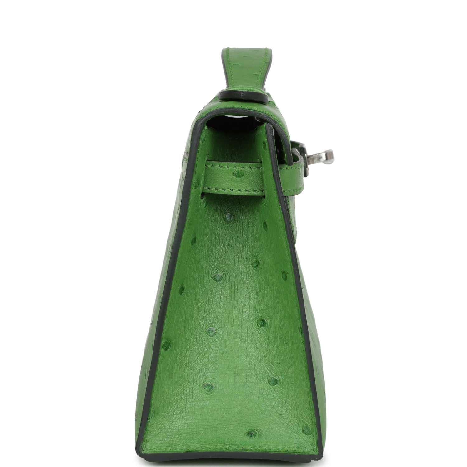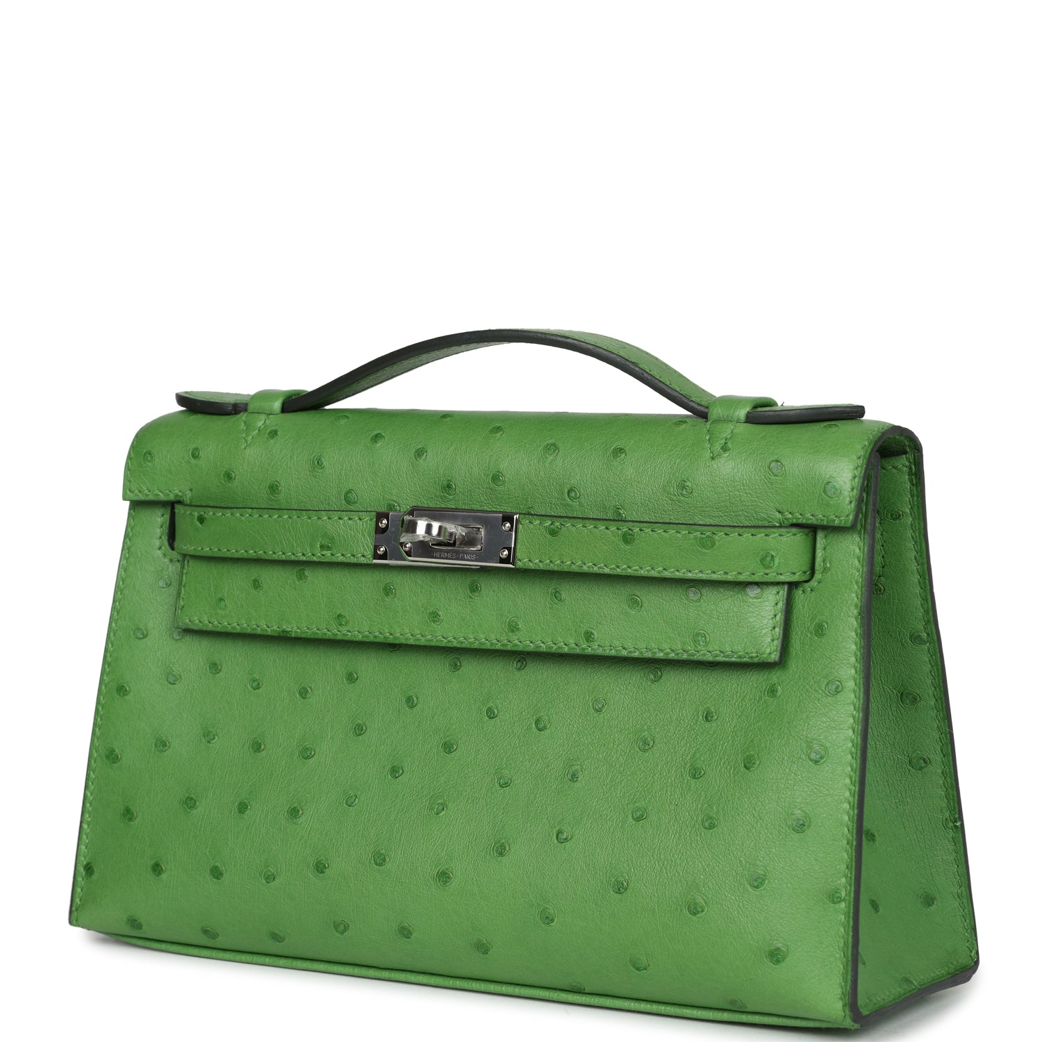 Hermes Kelly Pochette Vert Yucca Ostrich Palladium Hardware