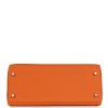 The interior is lined inOrange chevre and has one zip pocket with Hermès engraved pull and two open pockets on the opposite side.