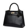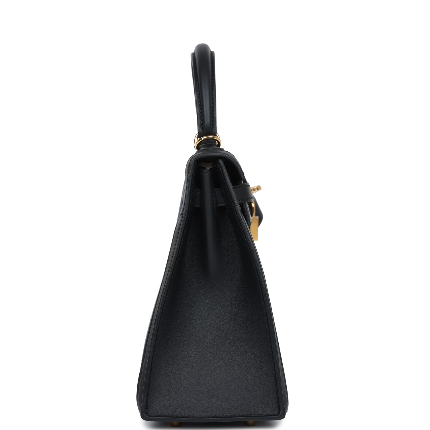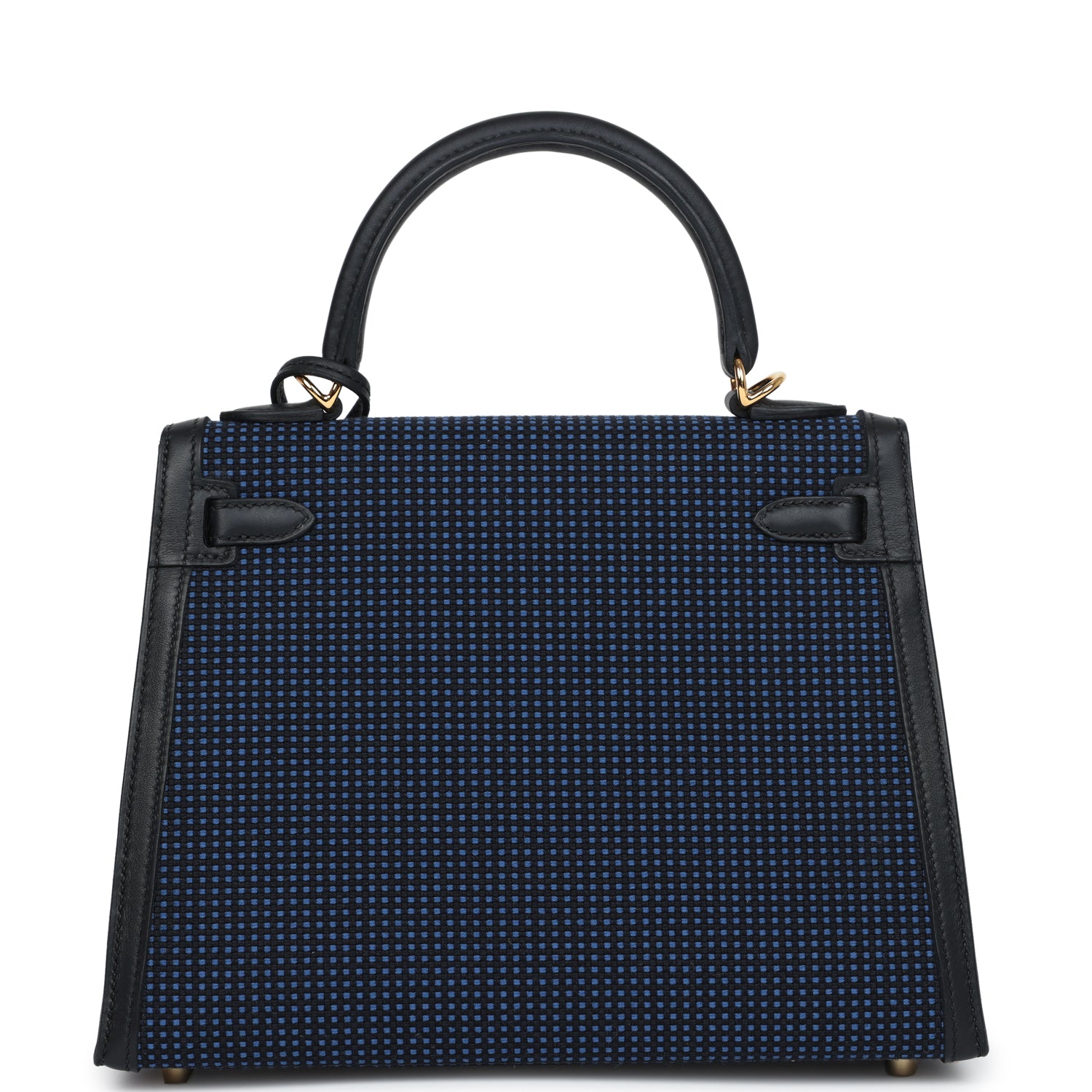 Hermes Kelly Sellier 25 Black Swift and Bleu Saphir Toile Gold Hardware