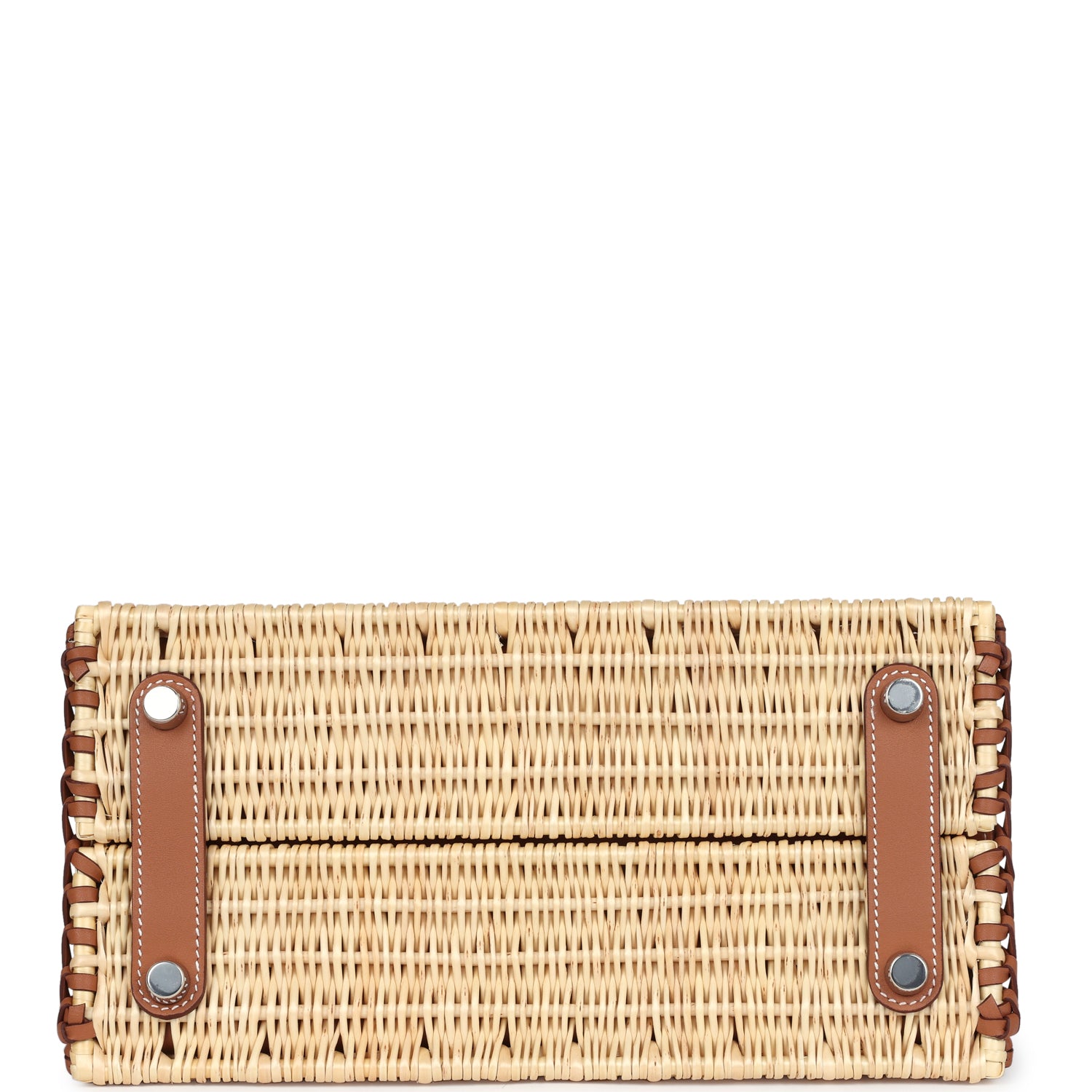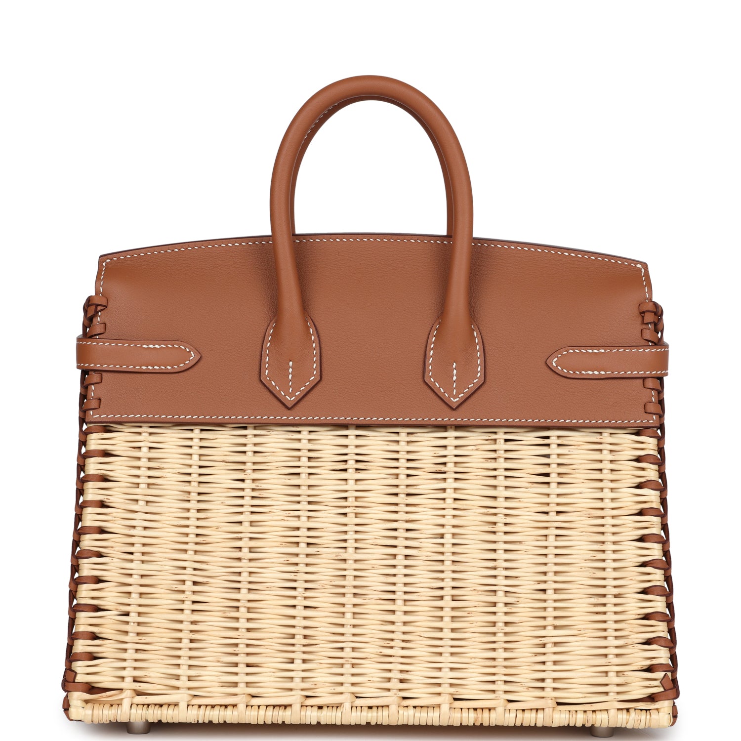 This rare Hermès Birkin 25 Picnic is in Gold swift leather and Naturel Osier wicker with palladium plated hardware and has contrast stitching, front flap, two straps with toggle closure and double top handles.