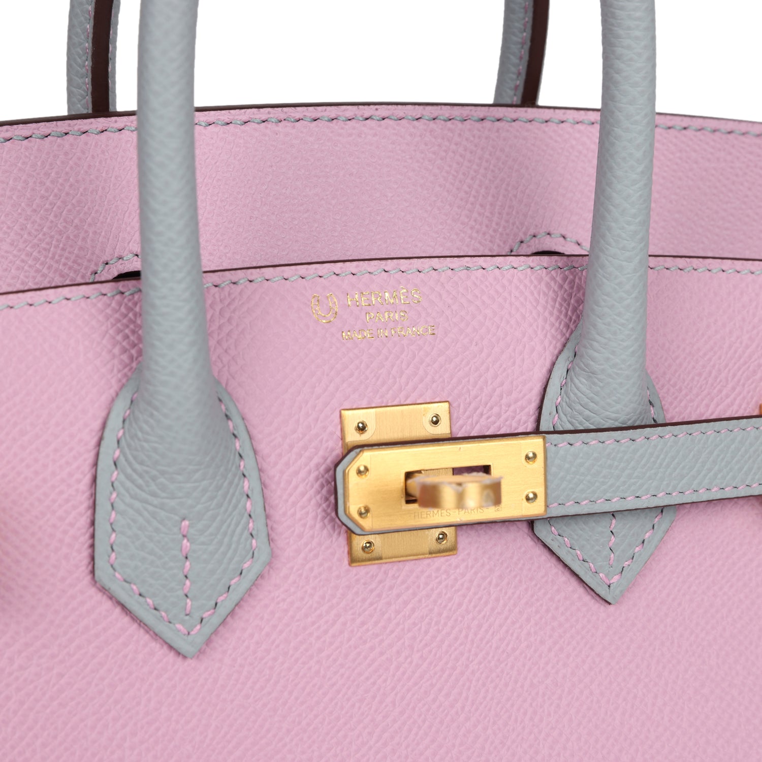 Hermes Special Order (HSS) Birkin 25 Mauve Sylvestre and Bleu Glacier Epsom Brushed Gold Hardware