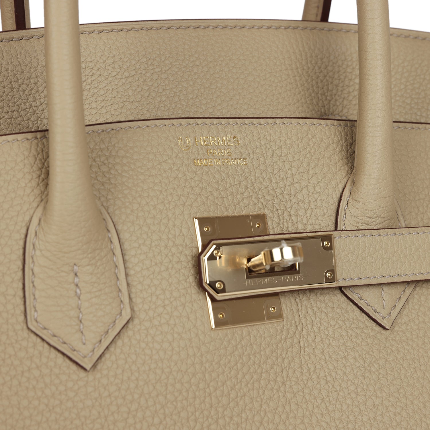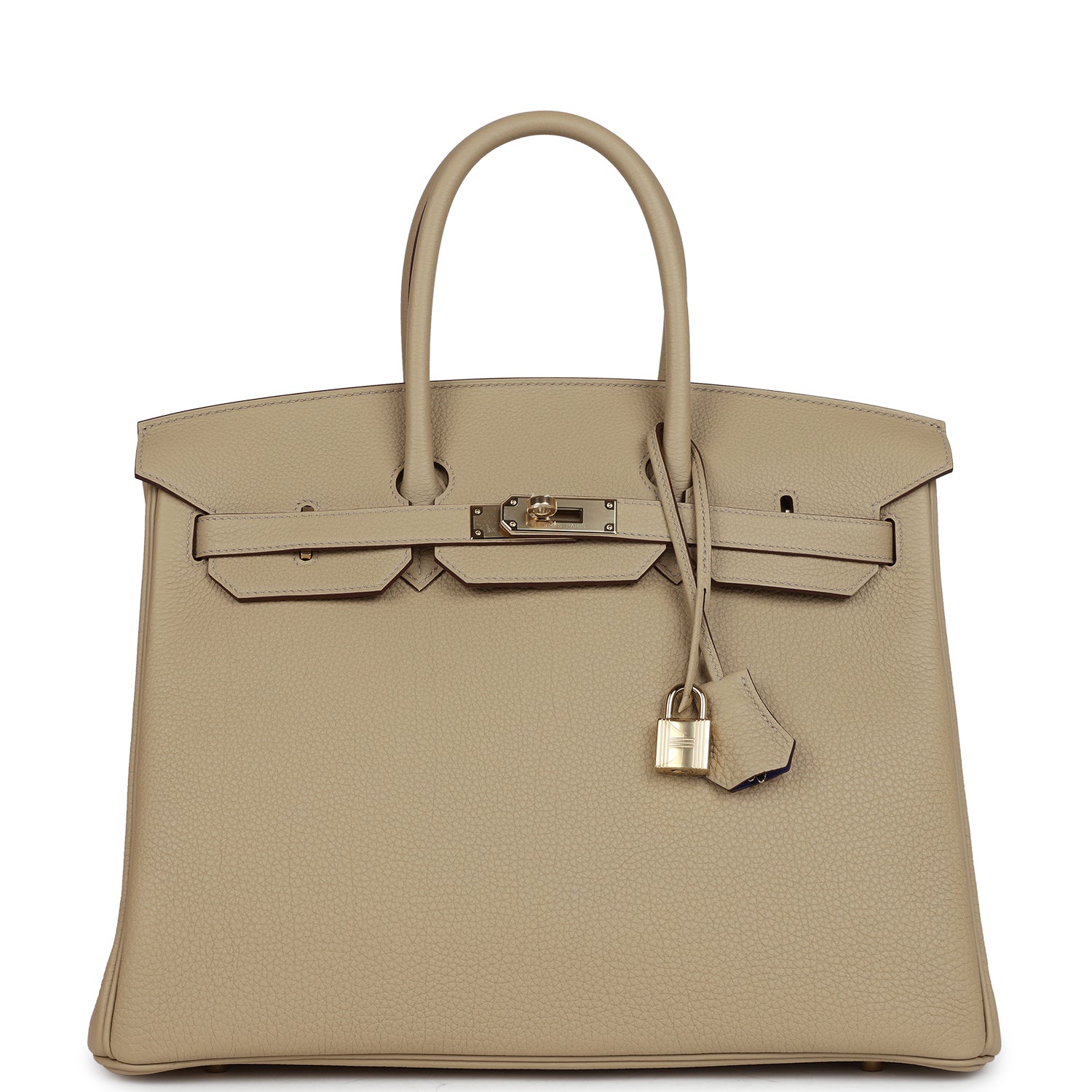 This Birkin is inTrench togo leather withpermabrasshardware and has tonal stitching, afront flap, two straps withcentertoggle closure, clochette with lock and two keys, and double rolled handles.