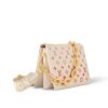 The Coussin PM is made from puffy lambskin, embossed with the Monogram, and features a chunky chain on which golden metallic links alternate with plexiglass links for a luminous touch of color. The Coussin has two inside compartments separated by an inside zipped pocket. In addition to the detachable chain, there is a wide removable strap.