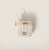 Fine matelassé workmanship revisits the classic bucket bag, giving it a three-dimensional, textured, and extremely sophisticated effect. The lettering logo on the front, which echoes different metallic finishes, stands out on the refined workmanship with an iconic and immediately recognizable touch. Dynamic, elegant lines and the adjustable and detachable shoulder strap help make the bag versatile, functional, and modern.