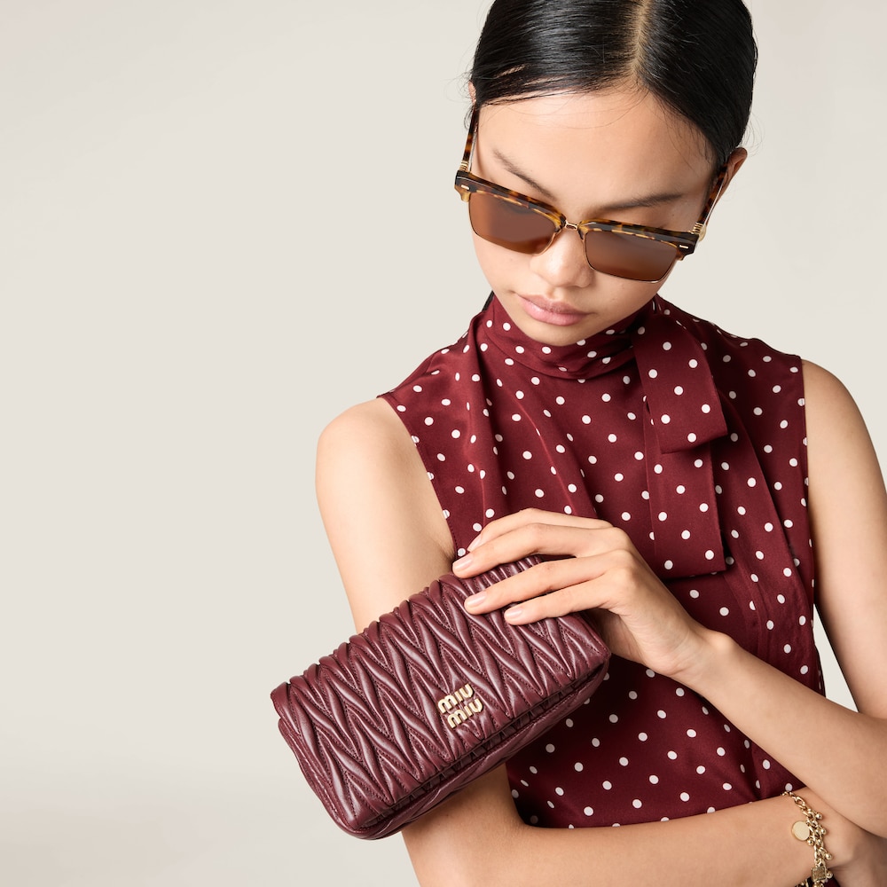 Precious matelassé workmanship enhances the compact lines of this nappa leather mini-bag thanks to a three-dimensional, textured, and extremely sophisticated effect. The lettering logo on the front echoing the different metallic finishes stands out against the refined motif with an iconic and instantly recognizable touch. The dynamic, elegant lines and the detachable and adjustable shoulder strap make the bag versatile, functional and modern.