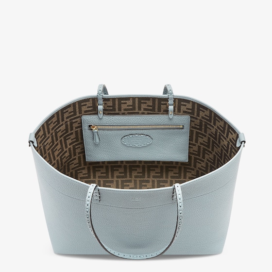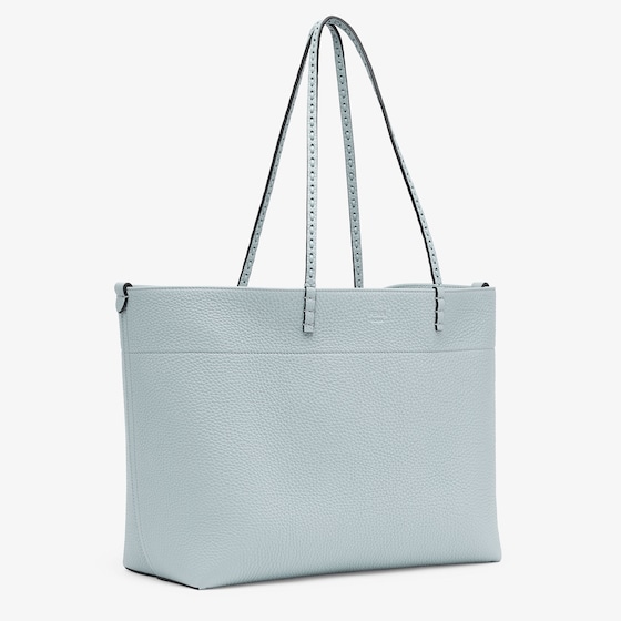 Made of light blue Cuoio Romano leather, calfskin with a characteristic natural grain produced with a metal-free tanning process.