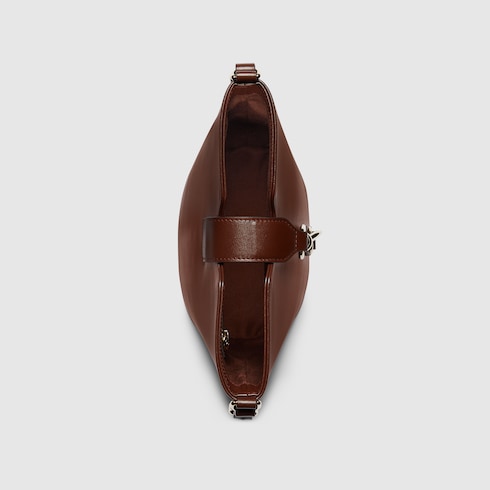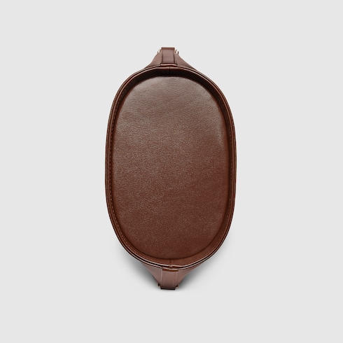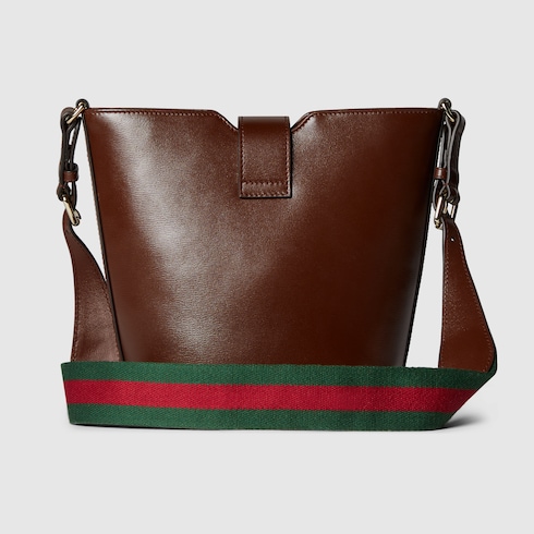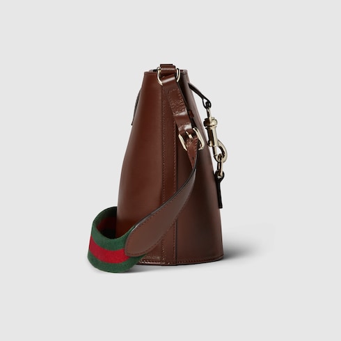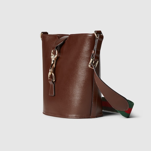 This mini bucket shoulder bag is crafted in brown leather. This accessory is a perfect blend of functionality and modernity thanks to the design with hook closure and a Web shoulder strap.
