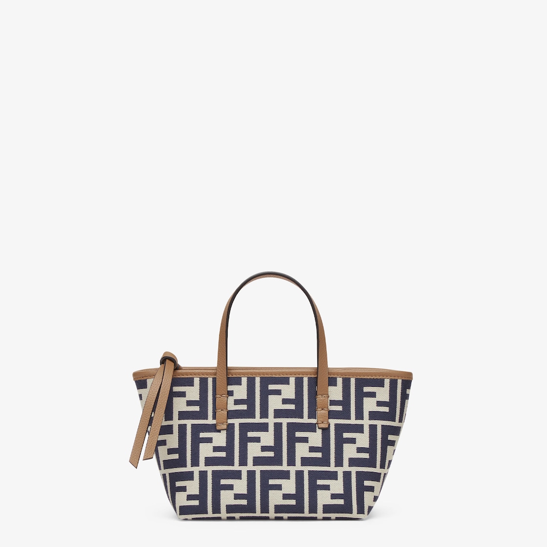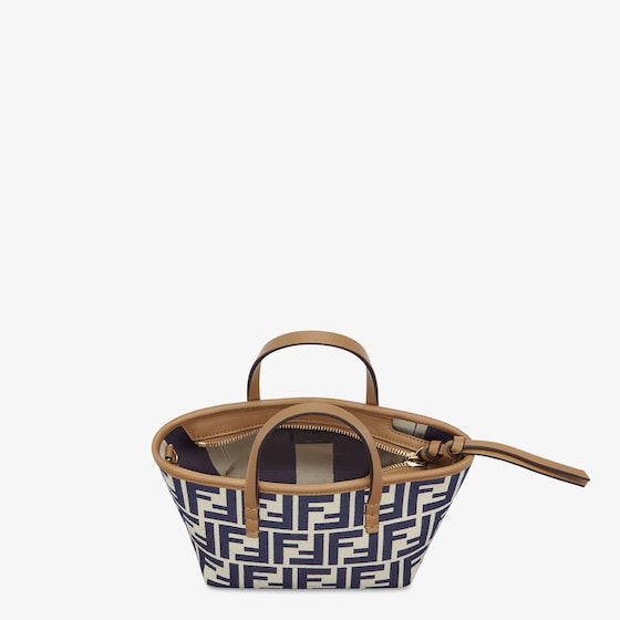 Mini shopping bag made of jacquard fabric with an iconic midnight blue FF motif. Embellished with beige leather and a zip fastening with a long, knotted leather zip pull.