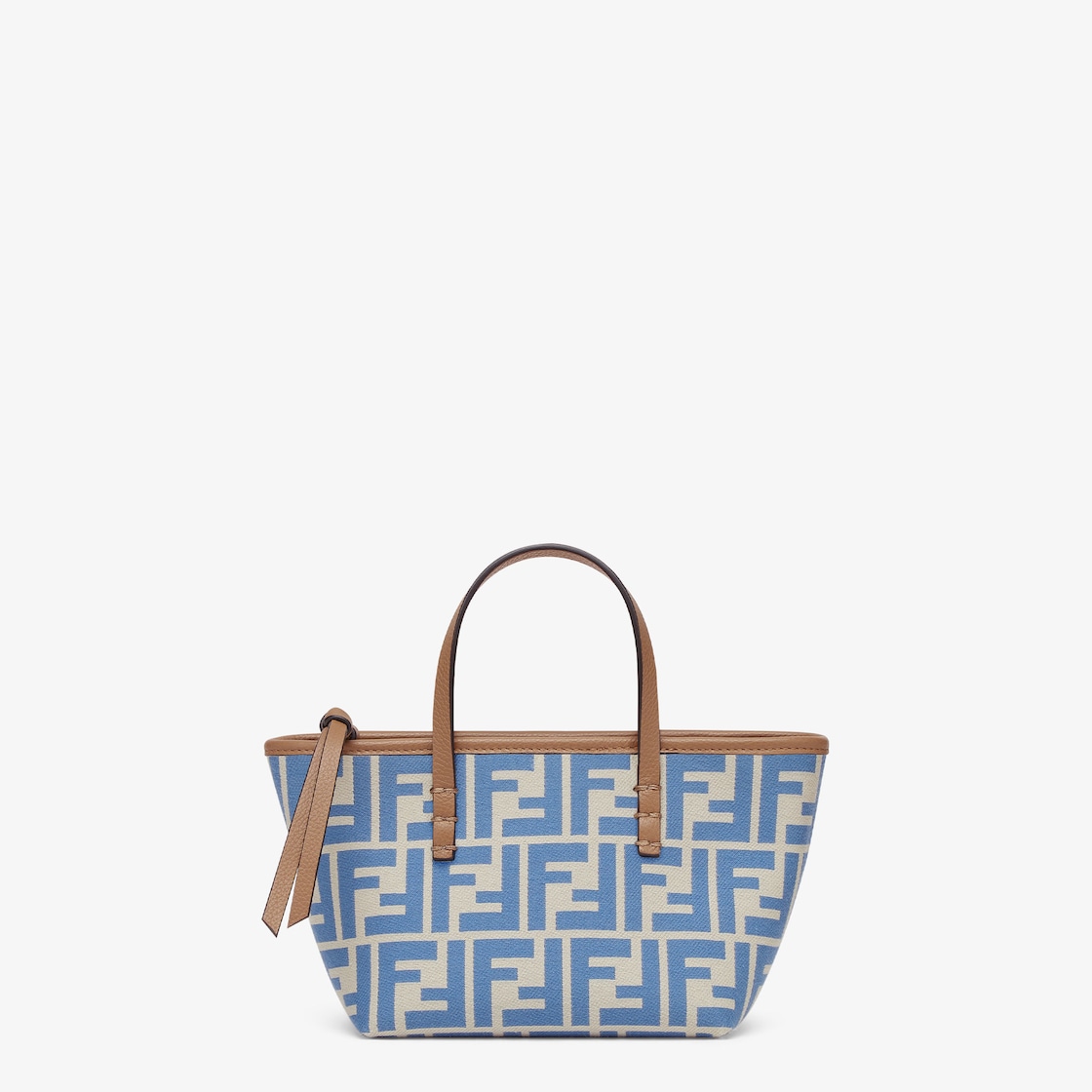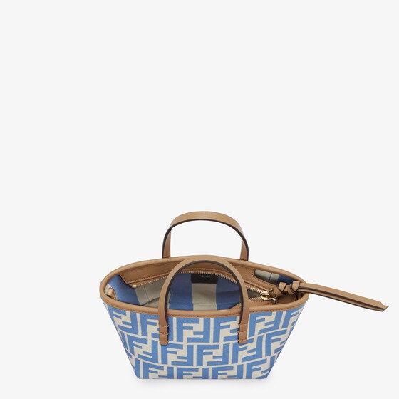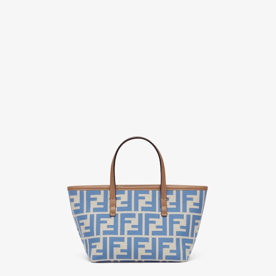 Mini shopping bag made of jacquard fabric with an iconic light blue FF motif. Embellished with beige leather and a zip fastening with a long, knotted leather zip pull.