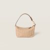 The iconic Cloquet motif distinguishes the design of the Miu Crystal bag, here with double shoulder strap:with crystals and woven nappa leather. $ The accessory is illuminated by the crystal-studded clasp.