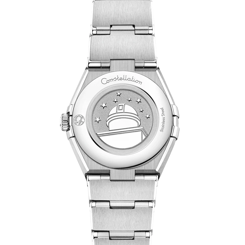 Dressed in stunning grey and silver tones, this stainless steel Omega Constellation watch measures a discreet 25mm diameter for slender female wrists. Its timeless look is owed to a sun-brushed grey dial adorned with 18ct white gold hands and stick hour markers. The simplified and well-proportioned dial of the lady’s Omega Constellation quartz watch makes it particularly easy to reference the time from. The famous Constellation star motif at 6 o’clock is balanced by the iconic Omega logo at 12 o’clock, framed by a bezel adorned with “Griffes” or claws on each side and engraved traditional Roman numeral markers. The front of the watch is protected by an anti reflective and scratch resistant sapphire crystal glass lens while the back of the case Features the Constellation Observatory medallion stamped to its surface. This sealed caseback conceals a reliable Swiss-made quartz movement behind it. The 30-meter water resistant lady’s Omega Constellation watch is completed on a robust stainless steel mono-rang bracelet, securing with a folding clasp engraved with the Omega logo.