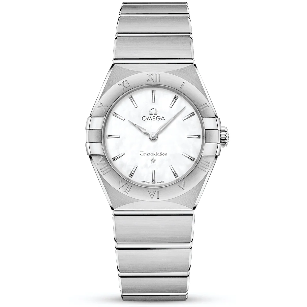 The sumptuous mother of pearl dial of this Omega Constellation watch, adorned with indexes for the hour track is a timeless companion for every Omega-collecting lady. The all-stainless steel model is equipped with 30-meter water resistance and Features the iconic bezel with claws executed in a meticulous polish and engraved Roman numerals. The front of the case is topped with a pane of sapphire crystal glass integrated with anti reflective and scratch resistant properties. The mother of pearl dial is also home to polished hands and the famous Constellation star motif. Inside the strong steel case is a reliable Swiss-made quartz movement guaranteeing a 48-month lifespan. The lady’s Omega Constellation Quartz watch also Features a mono-rang bracelet that wraps comfortably to the wrist with a foldable clasp engraved with the Omega lettering. The Omega Constellation watch collection has been a popular collectable since the first timepiece was released in 1959, originally launched as the centenary piece to celebrate Omega’s 100th birthday. The brand followed up with a whole collection after its initial success – each one now embracing a distinct contemporary look.