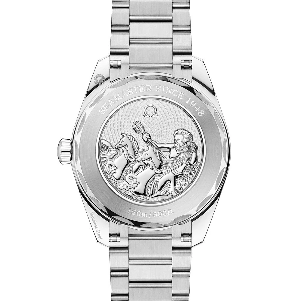 OMEGA Seamaster Aqua Terra 38mm Summer Blue Dial Automatic Bracelet Watch 220.10.38.20.03.004. Stainless steel 38mm case and bezel all on a matching stainless steel bracelet. This watch has a PVD-treated summer blue gradient dial with polished & luminous applied hands and hour markers as well as a date display at the 6 o’clock position. Water resistant up to 150m and sapphire crystal glass. 60 hour power reserve. OMEGA Calibre 8800 METAS approved automatic movement.