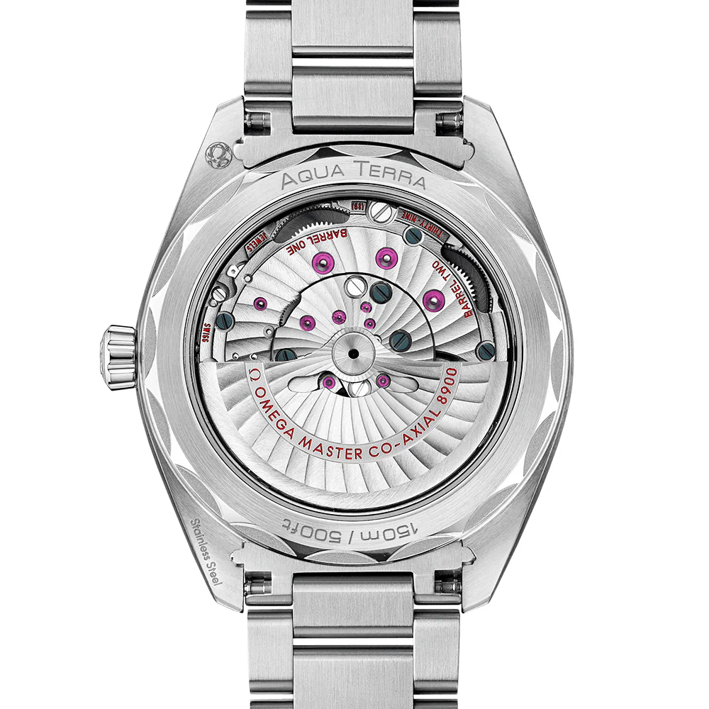 Paying tribute to OMEGA’s rich heritage in the maritime industry, this Seamaster Aqua Terra Co-Axial Master Chronometer watch combines unique water-ready style credentials with unprecedented functionality. The case of the watch is integrated with 150-meter water resistance and comes with a screw-down crown and sealed domed sapphire crystal glass front for helping the watch to uphold its water tightness. In addition to this, the back of the case Features an exhibition glass for admiring the performance of the OMEGA Master Chronometer calibre 8900 hard at work.