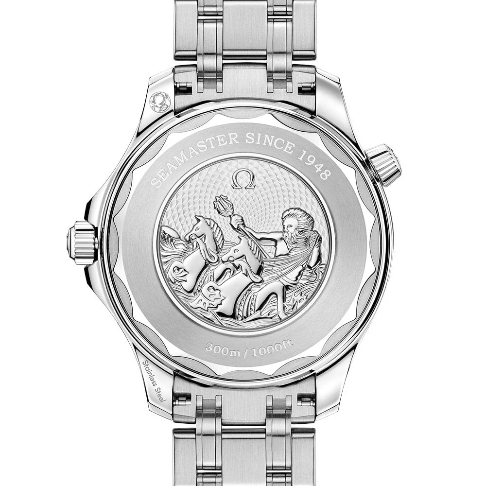 OMEGA Seamaster Diver 300m 42mm Summer Blue Dial Men’s Bracelet Watch 210.30.42.20.03.003. Stainless steel 42mm case and blue ceramic bezel all on a matching stainless steel bracelet. This men’s watch has a summer blue (Grand feu) enamel dial with polished & blue luminous applied hands and hour markers as well as a date display at the 6 o’clock position. Water resistant up to 300m and sapphire crystal glass. 60 hour power reserve. OMEGA Calibre 8800 METAS approved automatic movement.