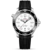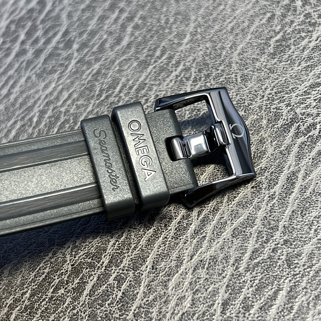 An integrated black rubber strap with a black ceramic buckle completes the watch’s bold appearance. A transparent sapphire crystal on the wave-edged case back offers a clear view of OMEGA’s Co-Axial Master Chronometer Calibre 8806 movement. This watch is designed to withstand strong magnetic fields, even those greater than 1.5 tesla (15,000 gauss), ensuring outstanding precision and performance.