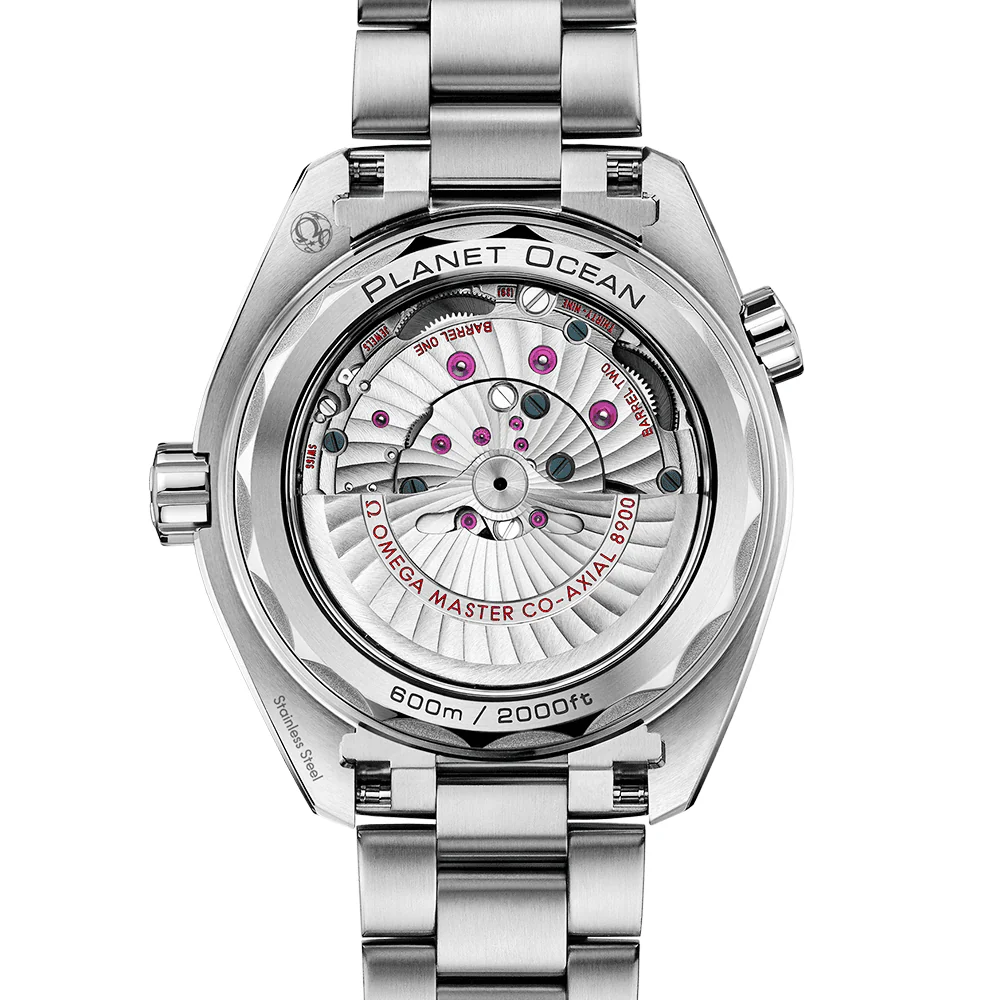 Continuing to pay homage to Omega’s formidable dive watch range, the Seamaster Planet Ocean 600M watch is as sleek and robust as ever. It presents the time clearly on a white ceramic dial with applied Arabic numerals in orange and a date window at the 3 o’clock position. Surrounding this three-handed date dial is a vivid orange ceramic unidirectional rotating bezel for effortless measuring of elapsed time underwater. Simply align the bezel with the minute hand to keep on track of remaining underwater time. Protecting the dial is an anti glare sapphire crystal glass front – a strong material that also forms the exhibition caseback for admiring the work of an in-house movement. The Omega Master Chronometer calibre 8900 provides an impressive 60-hour power reserve and is resistant to magnetic fields reaching 15,000 gauss. This Omega Seamaster Planet Ocean 600M watch is water resistant to 600 meters. Its stainless steel case, which measures a confident 43.5mm diameter, is also equipped with a screw-down crown and a helium escape valve at 10 o’clock. To complete its sophisticated yet sporty look, the Omega Seamaster Planet Ocean 600M watch secures to the wrist with a stainless steel bracelet, a patented folding clasp and a diver’s extension clasp.