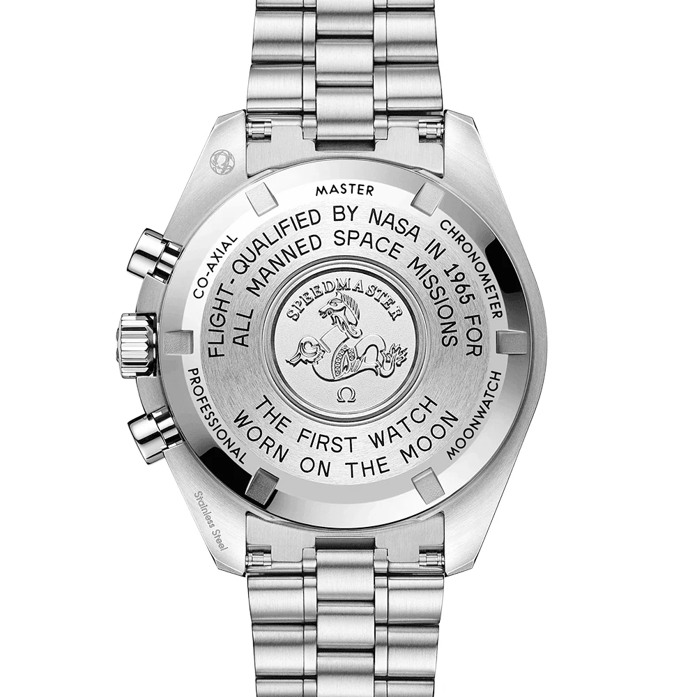 To complete its classic look, the OMEGASpeedmaster Moonwatch Professional Co-Axial Master Chronometer watch is finished on a five-row stainless steel bracelet with polished and brushed links and an OMEGA stamped folding clasp.