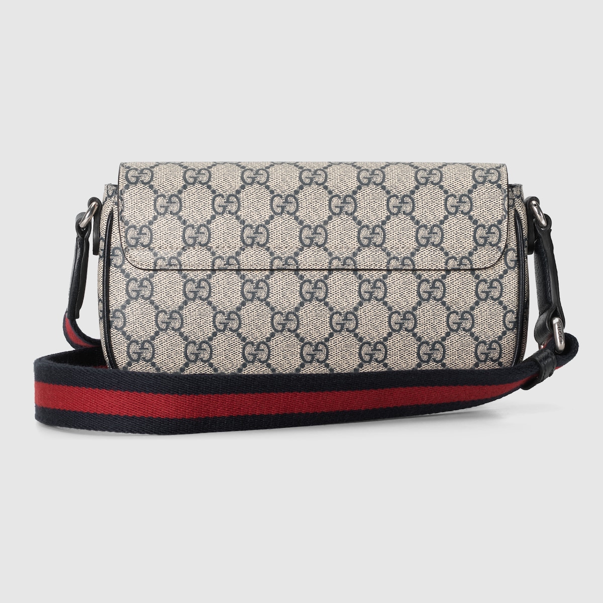 The world of Ophidia continues to evolve, incorporating new shapes and materials each season. Crafted from beige and blue Supreme canvas, this mini bag is further enriched by the Double G hardware and a Web shoulder strap.