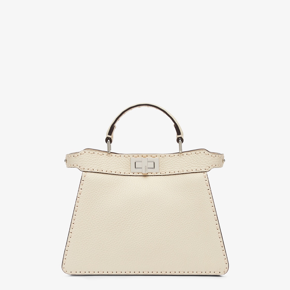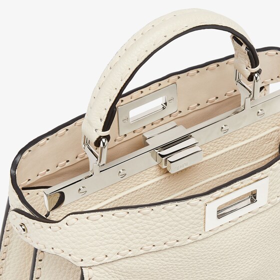 Small iconic Peekaboo ISeeU bag made with 556 tone on tone hand-sewn macro topstitches, an emblem of the iconic Selleria workmanship handed down through generations of Fendi artisans since 1925.