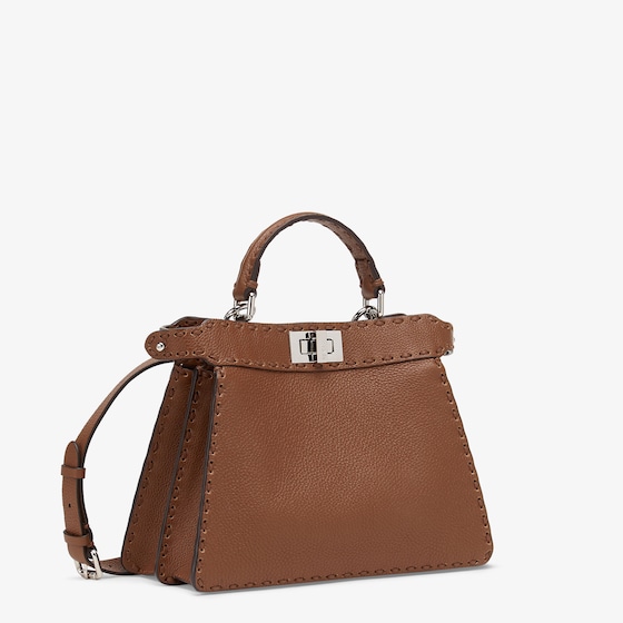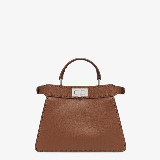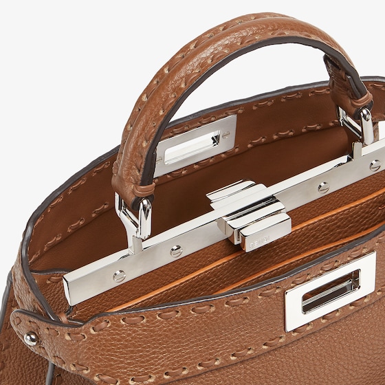 Small iconic Peekaboo ISeeU bag, made with 556 hand-sewn tone-on-tone macro topstitches, an emblem of the iconic Selleria workmanship.