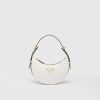 The classic hobo bag is reinterpreted with a current design that plays with emphasized volumes and curvy lines. An extremely soft shape characterizes the roomy silhouette with adjustable handle, enriched with sleek details and brightened by metal hardware. The enameled metal triangle logo adds a distinctive signature touch to the versatile and contemporary accessory.