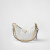 Sleek lines and iconic details define this versatile bag characterized by removable chain and leather handles. The accessory made of Saffiano leather is embellished with the distinctive enameled metal triangle logo.