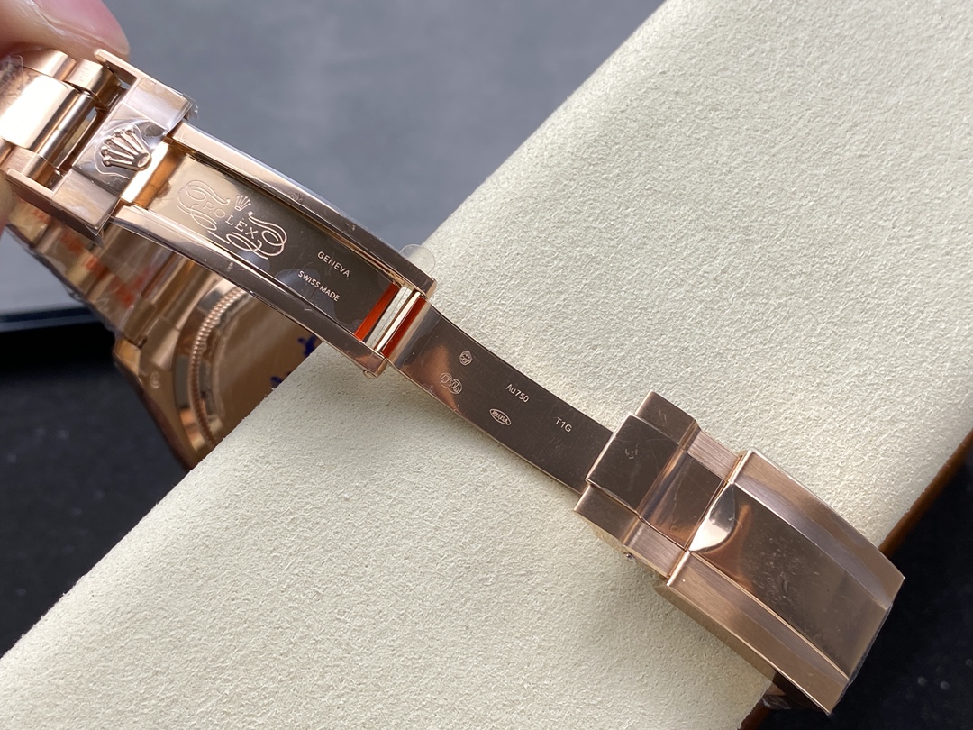 40mm Everose gold case, screw-down back, screw-down crown with triplock triple waterproofness system, fixed bezel with engraved tachymetric scale in 18K everose gold, scratch-resistant sapphire crystal scratch-resistant sapphire, bright black and sundust dial, diamond hour markers , diamond hour markers, manufacture Rolex perpetual, mechanical chronograph, self-winding movement with centre hour and minute hands, small seconds hand at 6 o’clock, chronograph via centre seconds hand, 30-minute counter at 3 o’clock and 12-hour counter at 9 o’clock, stop seconds for exact time setting.