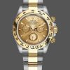 Rolex Cosmograph Daytona 116503 Black Mother Of Pearl Dial 40MM Mens Replica Watch,40MM Yellow Gold And Stainless Steel case,Screw Down crown. Scratch Resistant Sapphire crystal.Black Mother of Pearl dial With diamond hour markers,30-minute counter at 3 o’clock, and 12-hour counter at 9 o’clock,Stainless steel and yellow gold oyster bracelet with flip-lock clasp.