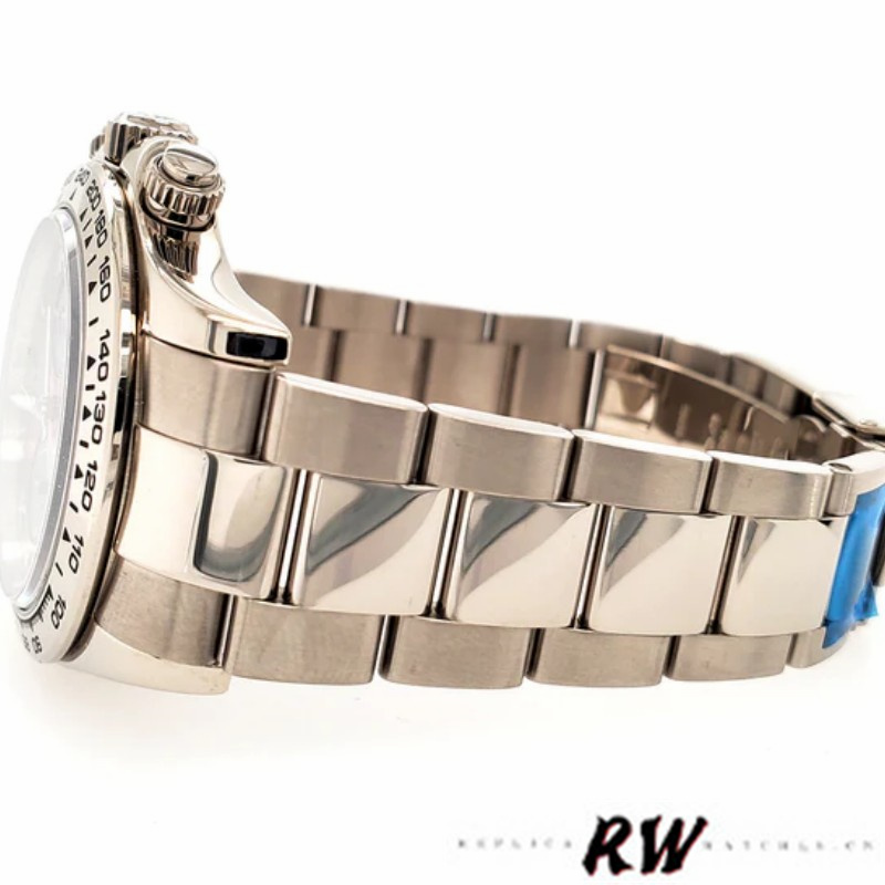 Rolex Cosmograph Daytona 116509 Black Mother of Pearl Dial 40MM Mens Replica Watch has a White Gold 40 mm Case,Black Mother of Pearl dial with Roman Numeral hour markers, 30 Minute Counter Sub-Dial at 3 O’Clock,12 Hour Counter Sub-Dial at 9 O’Clock,Small Seconds Sub-Dial at 6 O’Clock,sapphire crystal,White gold oyster bracelet with flip-lock clasp.