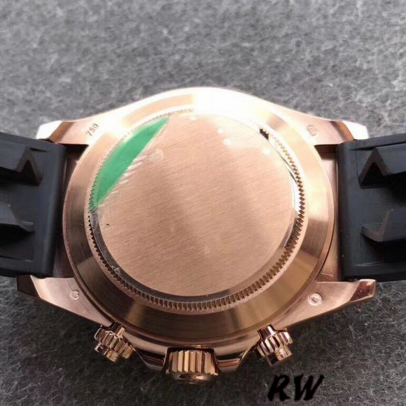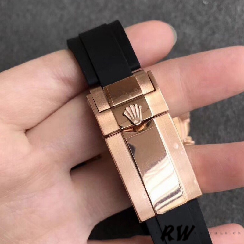 Rolex Cosmograph Daytona 116515 Chocolate Brown Dial 40mm Mens Replica Watch.40mm Everose gold case with brushed and polished finished center lugs.features chocolate dial with Arabic numerals. Black ceramic bezel. Comes on black leather strap with rose gold deployant buckle. Black “Cerachrom” bezel, made of highly durable ceramic that is extremely hard, highly scratch-resistant, has excellent corrosion resistant properties is unaffected by ultraviolet rays so the color will not fade.
