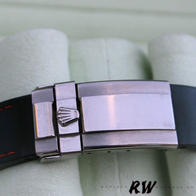 Rolex Cosmograph Daytona 116519 Grey Racing Dial 40mm Mens Replica Watch.The 40mm white gold case Rolex watch has a Triplock winding crown and two screw-down chronograph pushbuttons.Racing grey dial with triple grey counters with luminescent grey gold indexes and hands,Fixed domed tachymeter bezel and a scratch-resistant sapphire crystal.It comes with a Stunning Slate Dial with Red Hands.The watch comes with Black RubberB band with red stitching.