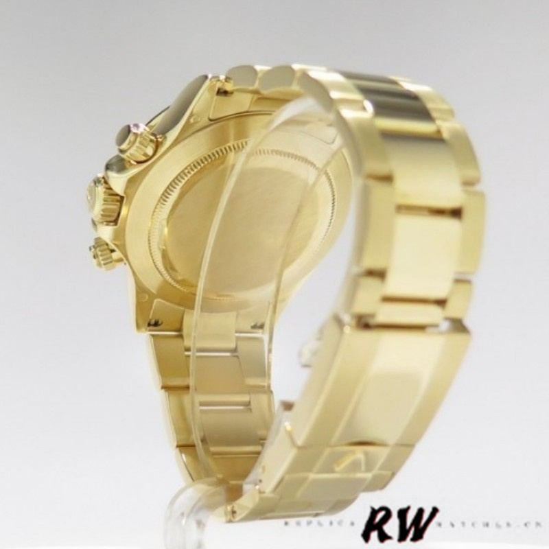 Rolex Cosmograph Daytona 116528 Grey Index Dial 40MM Mens Replica Watch,40mm yellow gold case in diameter. Yellow gold tachymeter engraved bezel. Scratch resistant sapphire crystal. Grey Dial with Index Hour Markers.Outer 1/5th seconds track. Three Gold outlined subsidiary dials for the seconds, the 12-hour and 30-minute registers. Luminous yellow gold baton hands.Yellow gold oyster bracelet with flip-lock clasp.