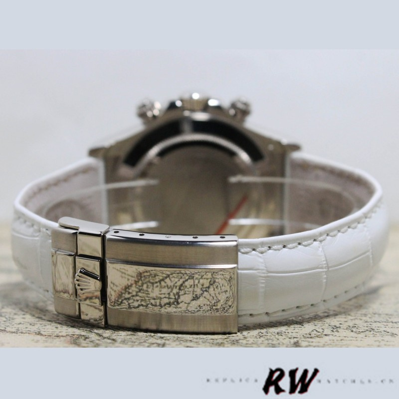 Rolex Cosmograph Daytona 116589 White MOP Diamond Dial 40MM,40MM White Gold Bezel Set With Diamonds,Scratch Resistant Sapphire crystal.White Mother of Pearl dial With diamond hour markers,30-minute counter at 3 o’clock, and 12-hour counter at 9 o’clock,White Leather Strap,Screw Down Crown with Triplock Triple Waterproofness System.