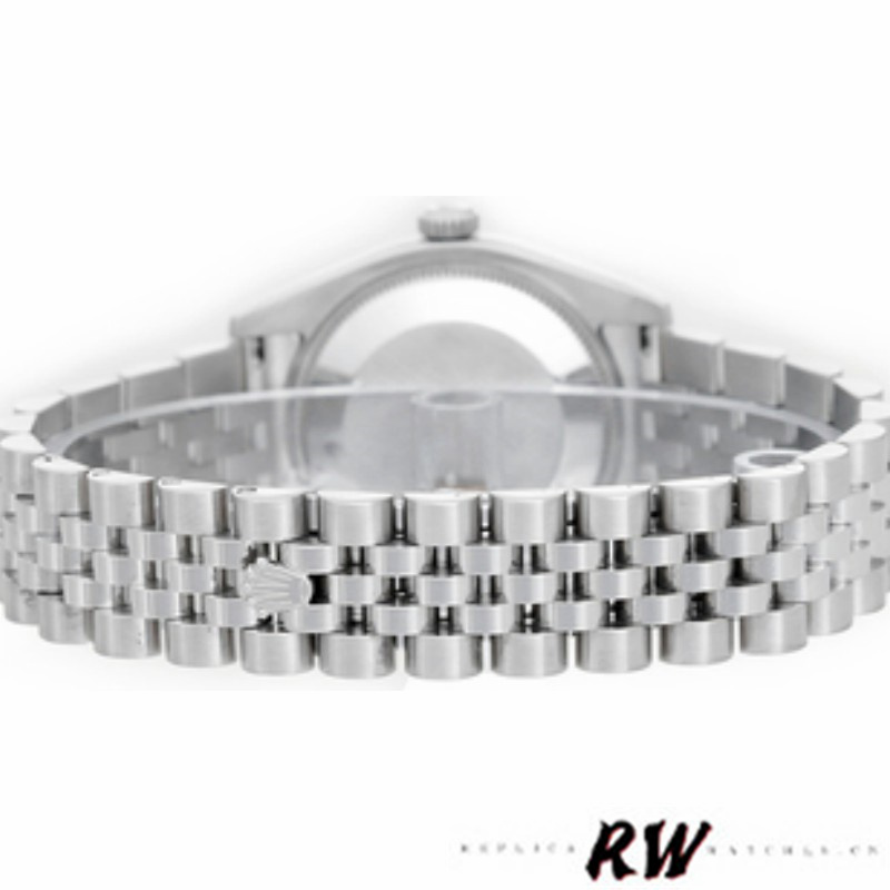 Rolex Datejust 178384 Stainless Steel Black Roman Dial 31MM Lady Replica Watch,has a White Gold 31 mm Round Case with Screw Down Crown,White Gold bezel with set diamonds.Black Dial with Roman Dial Markers.Date calendar at 3 o’clock aperture. Stainless steel jubilee bracelet with fold over clasp.