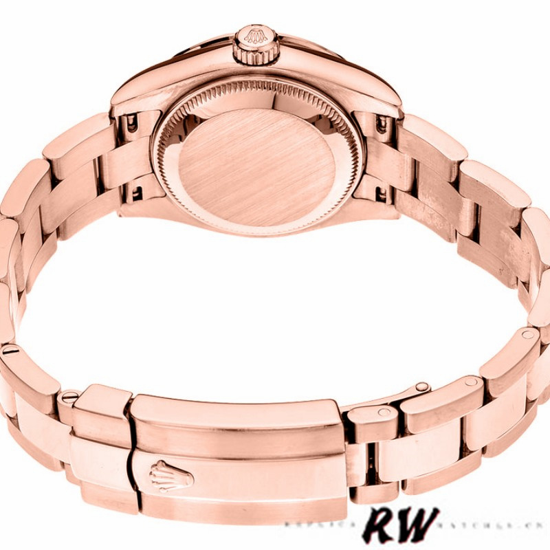 Rolex Datejust 179165 Everose Gold White Index Dial 26MM Lady Replica Watch,26MM rose gold oyster case and rose gold smooth domed bezel. Scratch resistant sapphire crystal with cyclops magnifier. White dial with Index Hour Markers.Date window at 3 o’clock. Rose gold Oyster bracelet with an Oysterlock clasp and easylink micro-adjustment.