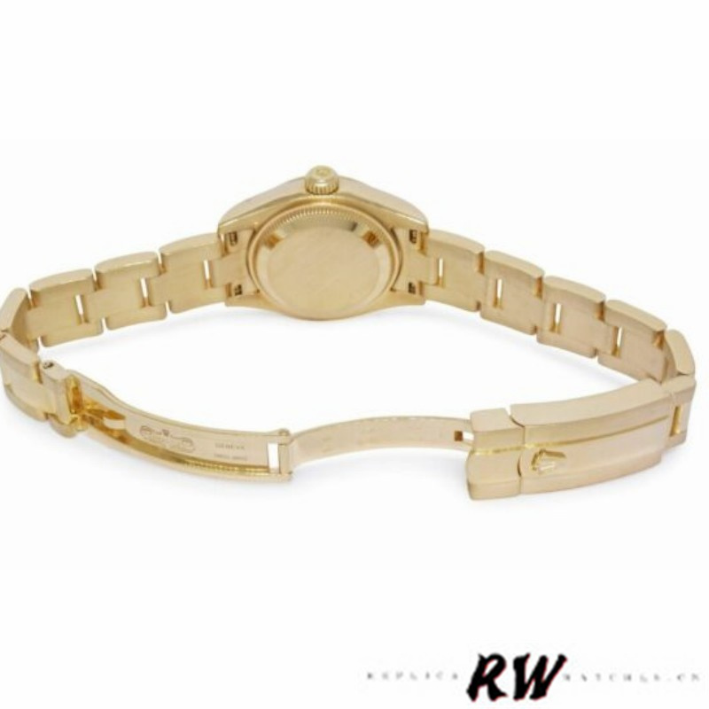 Rolex Datejust 179168 Smooth Domed Champagne Roman Dial 26MM Lady Replica Watch,26MM yellow gold oyster case and yellow gold smooth domed bezel. Scratch resistant sapphire crystal with cyclops magnifier. Champagne dial with Roman Numeral Hour Markers.Date window at 3 o’clock. Yellow gold oyster bracelet with fold over clasp.